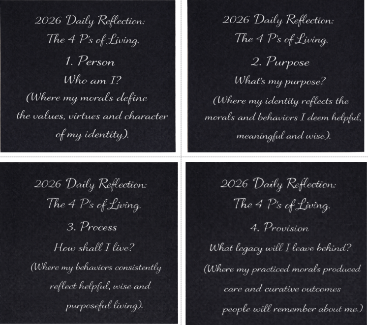 As you enter 2026, I encourage you to ask yourself, reflect on, and then provide a behavioral response to these four questions each day. Asking myself these questions, and responding with intentional behavior, helps me stay focused on what is important and valuable in life, and clarifies how I wish to purposefully use my energy each day.